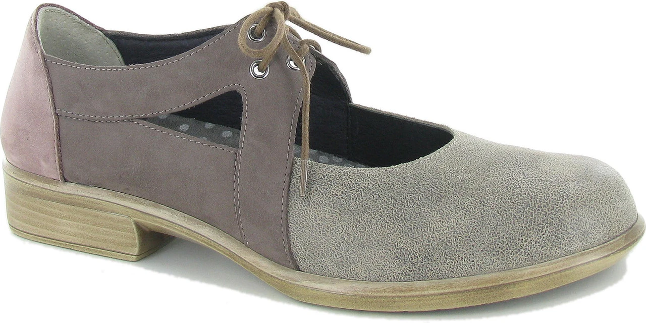 Englin’s Fine Footwear presents the women’s ‘Alisio’ from Naot. The Alisio is a charming yet durable fall shoe. With its neutral, tricolored nubuck, slip resistant sole, and securing laces, the Alisio matches with everything and is up for any autumn adventure. The Alisio also features Naot’s removable, anatomic cork & latex footbed, which is wrapped in microfiber & leather and molds to the shape of the foot with wear. The Aura Collection features a 1.5″ polyurethane sole with a metal shank which is extremely lightweight, durable & abrasive to prevent slipping. This collection uses a hand-sewn stroble construction making it strong and extremely flexible.